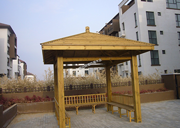 防腐木凉亭解决了传统户外建筑施工空间大,环境破坏严重的弊端,烟台防腐木凉亭施工占用....